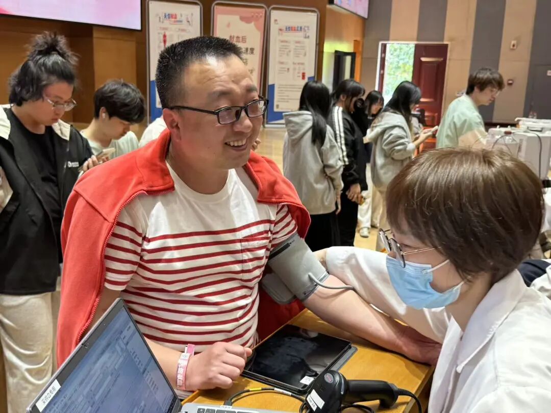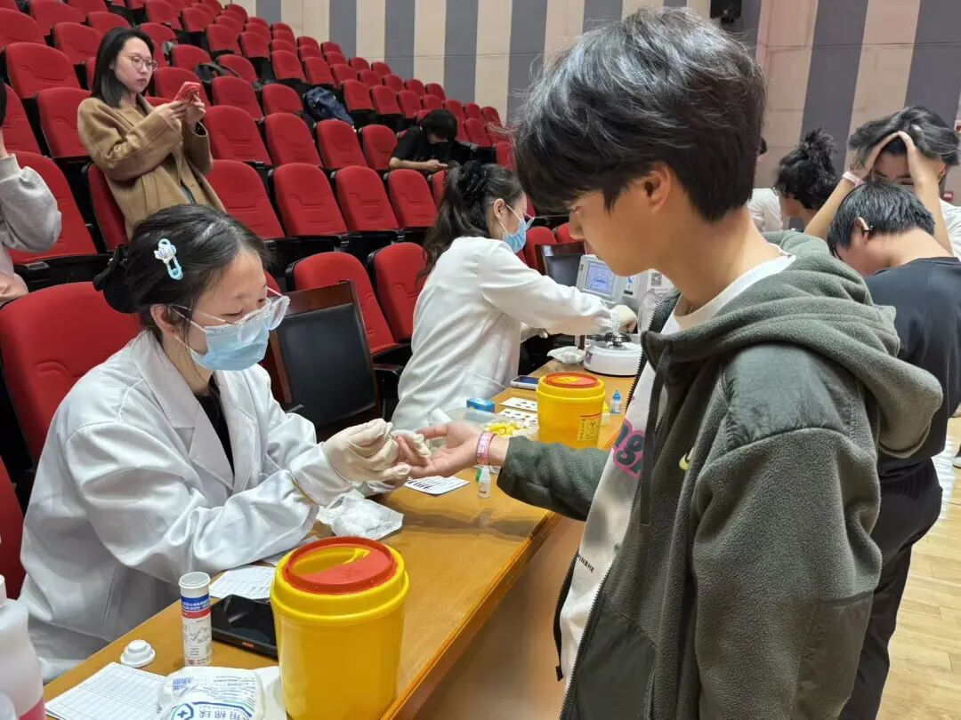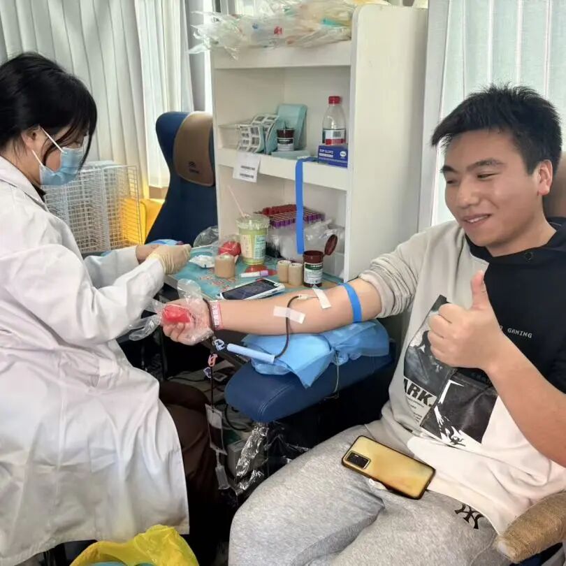 在学院工作人员与医护人员的引导下,参与献血的师生们早早抵达现场,自觉排队、依次等候,有条不紊地完成信息登记、血压测量、血液初筛、静脉采血等全流程环节—从深耕讲台、诲人不倦的教师,到朝气蓬勃、意气风发的学子,大家怀揣着对生命的敬畏之心,抱着奉献社会的赤诚热忱,每一个身影都满是善意与力量。采血结束后,工作人员为每一位爱心奉献的师生送上慰问品与专属献血证书,向他们致以最诚挚的敬意,感谢他们以热血为生命护航,以善举让温情满溢人间。
