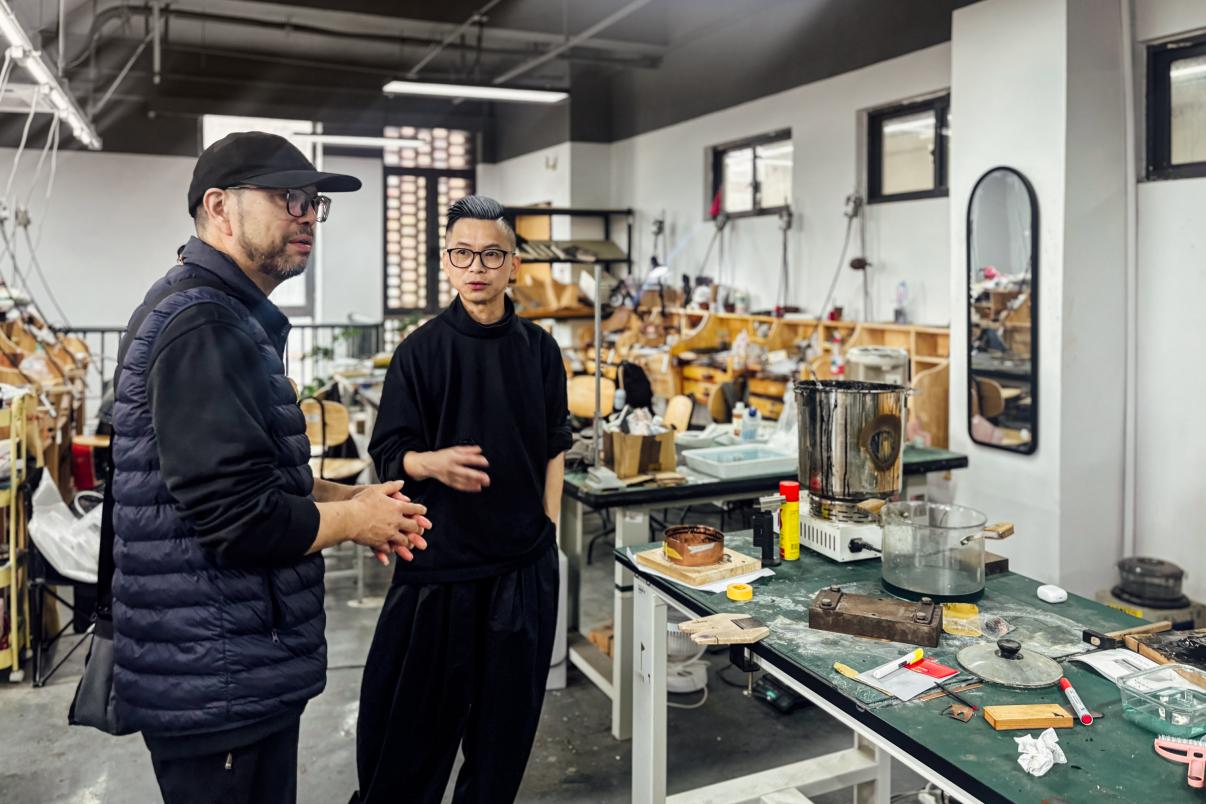 调研团队实地走访陶艺、漆艺术、艺术品陈设与软装、插图与出版等特色工作室,详细了解学院发展历程、专业布局、办学现状及本科教学运行情况。双方边走边交流,就专业建设思路与实践经验充分交换意见,重点沟通了教学、创作、展览一体化空间规划与建设经验,直观感受了“以工作室为载体、以项目实践为支撑”的本科设计人才培养模式。