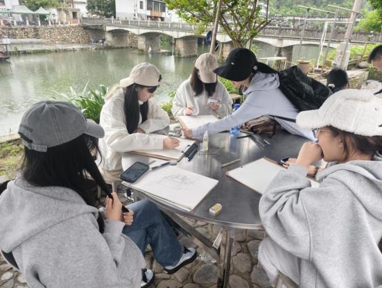 写生期间,师生深入景德镇多地沉浸式学习。在瑶里古镇,同学们置身徽派古民居群落,观察传统民居布局、构造等,感受营造理念与人文温度,记录古建线条与空间;在陶溪川文创街区,感受传统工业与现代设计碰撞,学习旧厂房改造思路;在三宝村和寒溪村,观察记录艺术装置等细节并完成作品。大家在山水瓷韵中感受传统村落智慧,汲取创作灵感,提升了观察、表达与实践能力……